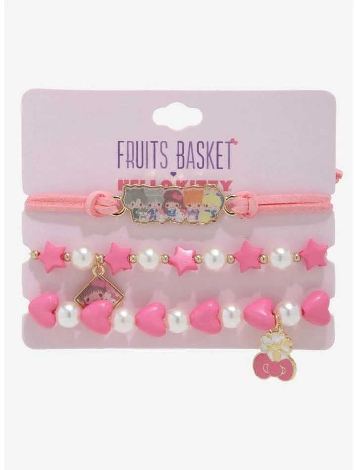 Keep your jewelry collection as kawaii as this collab! Your favorite anime is here to pair up with your fave Sanrio characters with this Fruits Basket x Hello Kitty and Friends bracelet set, featuring a cord bracelet with a group pendant, and beaded bracelets with charms of Tohru and Hello Kitty icons.