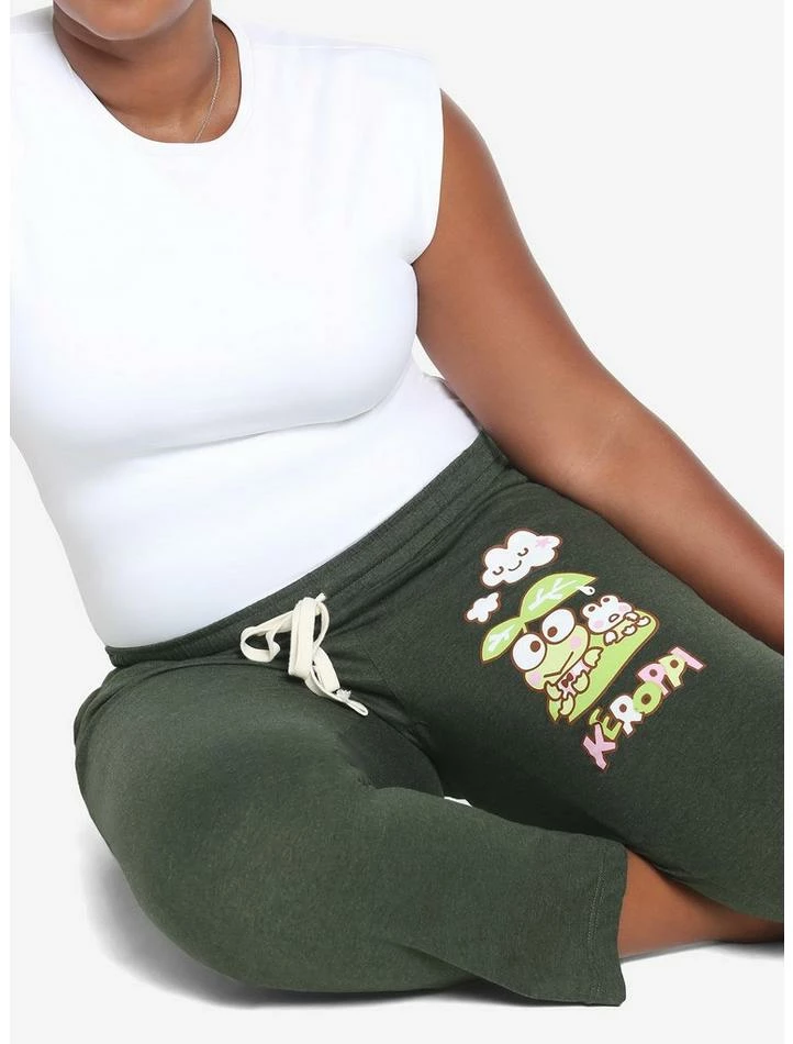Tired from hopping on lily pads all day? Cozy up in these green pajama pants and watch the clouds with Keroppi! These green pajama pants feature Keroppi and Chippi relaxing under leaves as they admire the clouds above. Comes with hip pockets, a single-button fly and an elasticated drawstring waistband.ย
