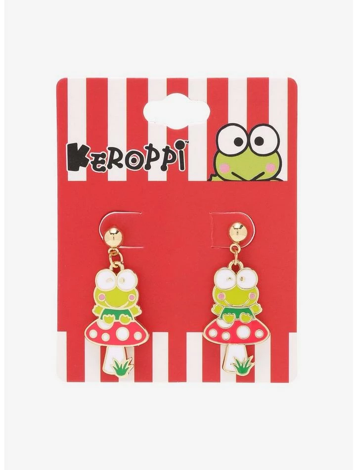 Make some (mush)room in your jewelry collection, because Keroppi’s definitely hopping to the top of your favorites with this pair of earrings! These stud drops feature your favorite Sanrio character sitting on top of a mushroom.