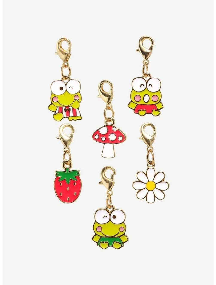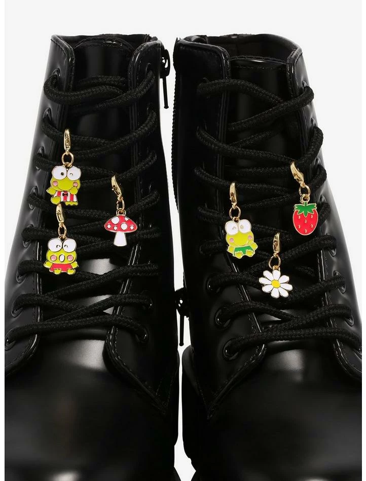 Make your shoes extra cute to hop around in with these adorable hanging shoe charms! This set features charms of a strawberry, mushroom, flower and Keroppi striking poses.