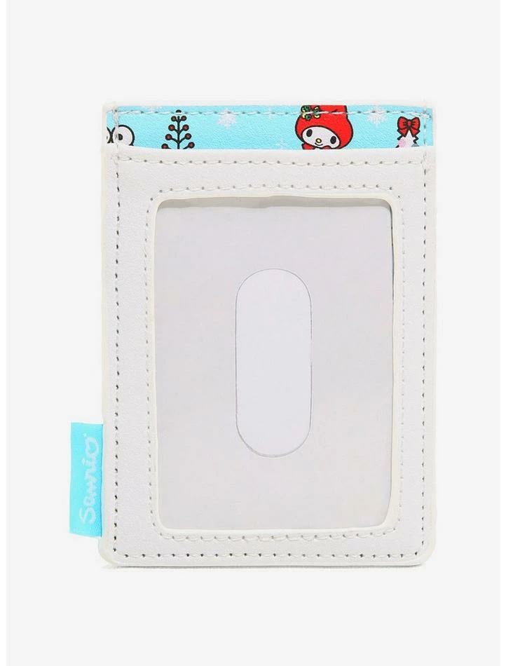 Keep it cozy and kawaii this holiday season with Hello Kitty and friends! Fill up this vertical cardholder with all of your cards and cash for this festive time of year. Featuring a toss print of Hello Kitty as a snowman, Christmas trees and the rest of your Sanrio faves donning their winter outfits! Comes with 3 card slots, top center slot and clear ID slot.