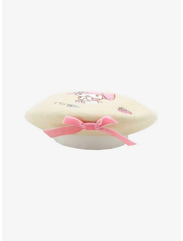 Make your ‘fit look extra sweet with a touch of Sanrio style! This supercute beret features embroideries of My Melody posing shyly, plus flowers and strawberries. Complete with a dainty, pink velvet bow detailing.